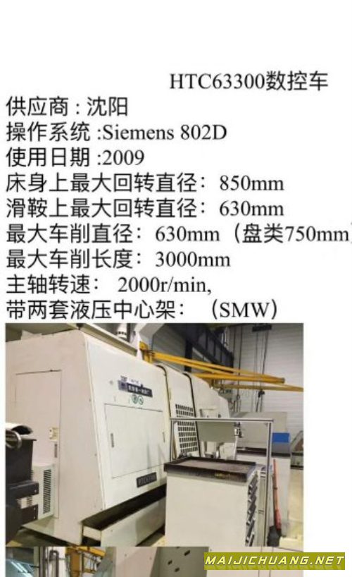 2009年沈阳HTC63300数控车銑中心,加工能力盘类750,轴类630*3000,西门子系统,配备2个德国SMW全自动液压中心架。机床安装少用。